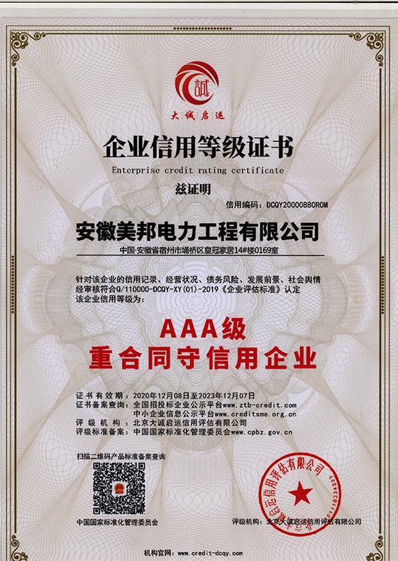 安徽美邦電力工程有限公司成立于2015年6月,坐落于宿州高新區。是一家從事電力工程設計、電力設備生產、電力工程施工、電力托管服務、電力工程搶險為一體的一站式綜合性公司。公司現有各類專業技術職稱的管理人員及大批從事電力工程專業施…